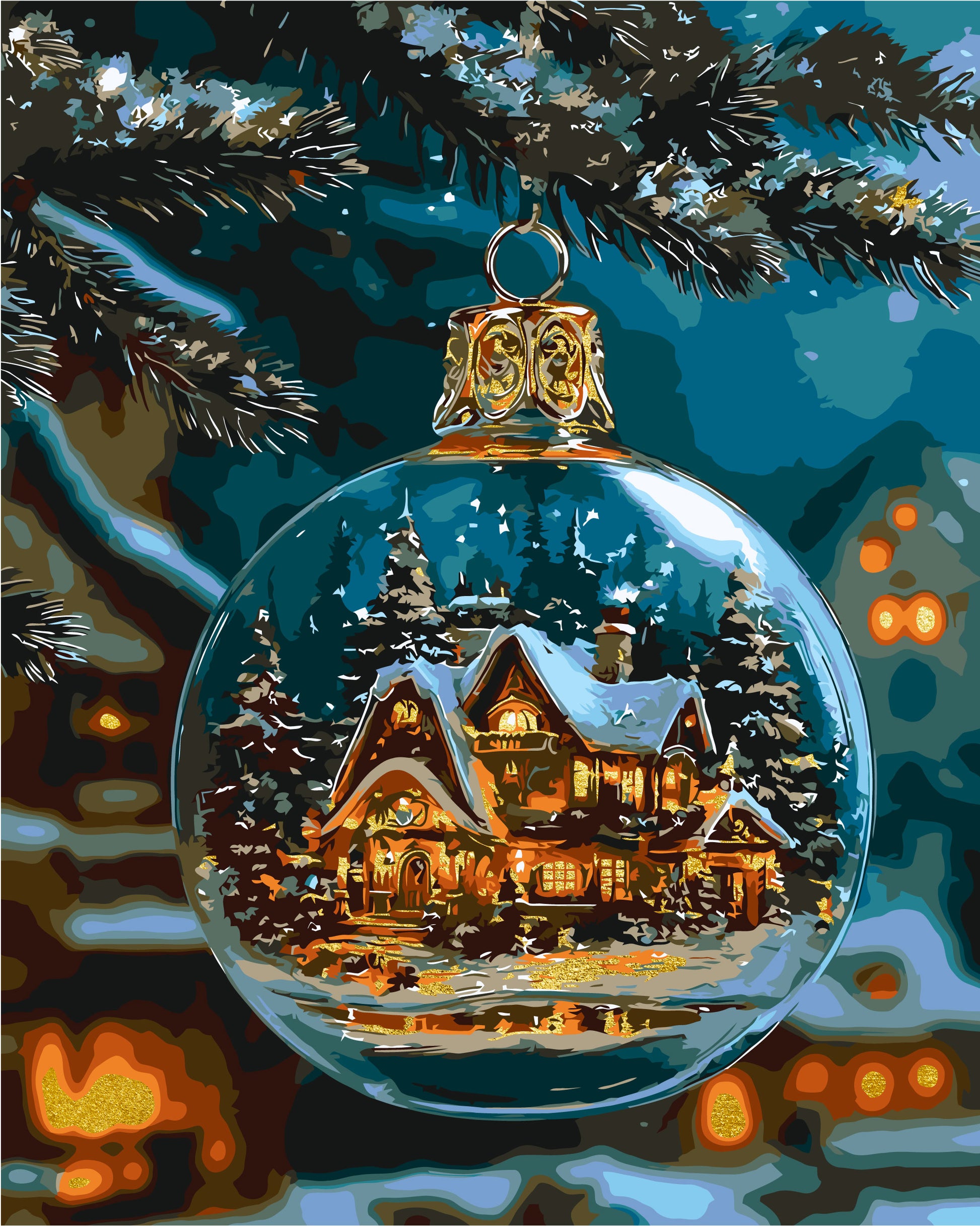 Maľovanie podľa čísel Zimná Teplo vianočnej noci s metalickými farbami 40*50 cm LW 3550