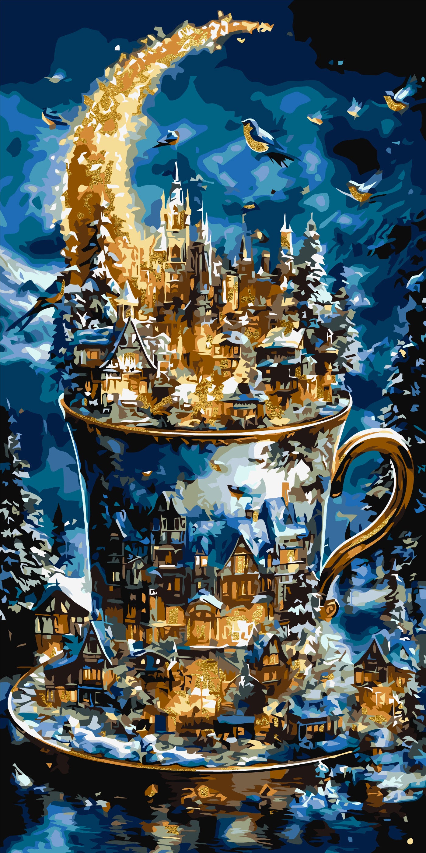 Maľovanie podľa čísel Zimná krajina s metalickými farbami 40*80 cm LW 5179