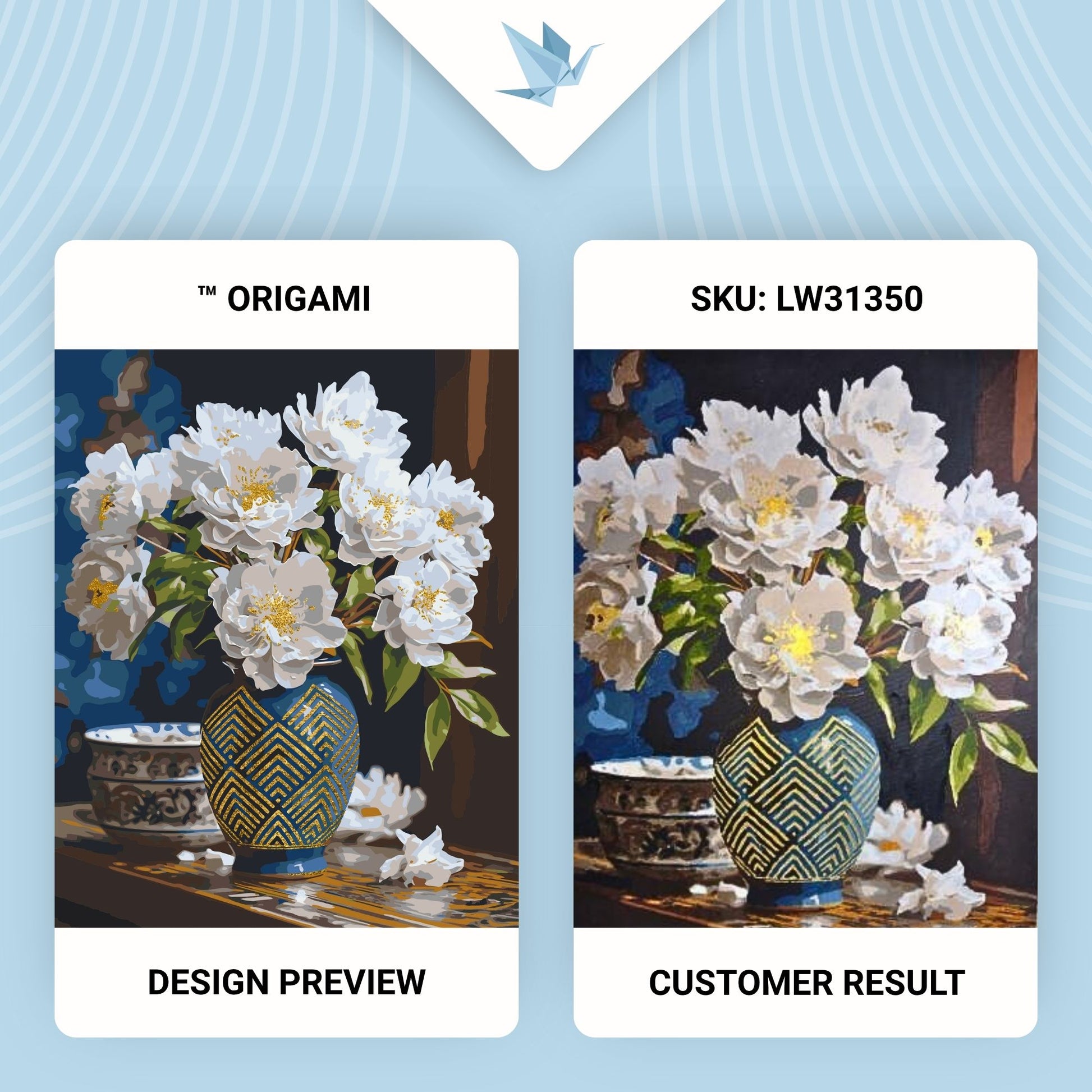 Maľovanie podľa čísel Bielé kvety vo váze s metalickými farbami zlato 40*50 cm LW 31350