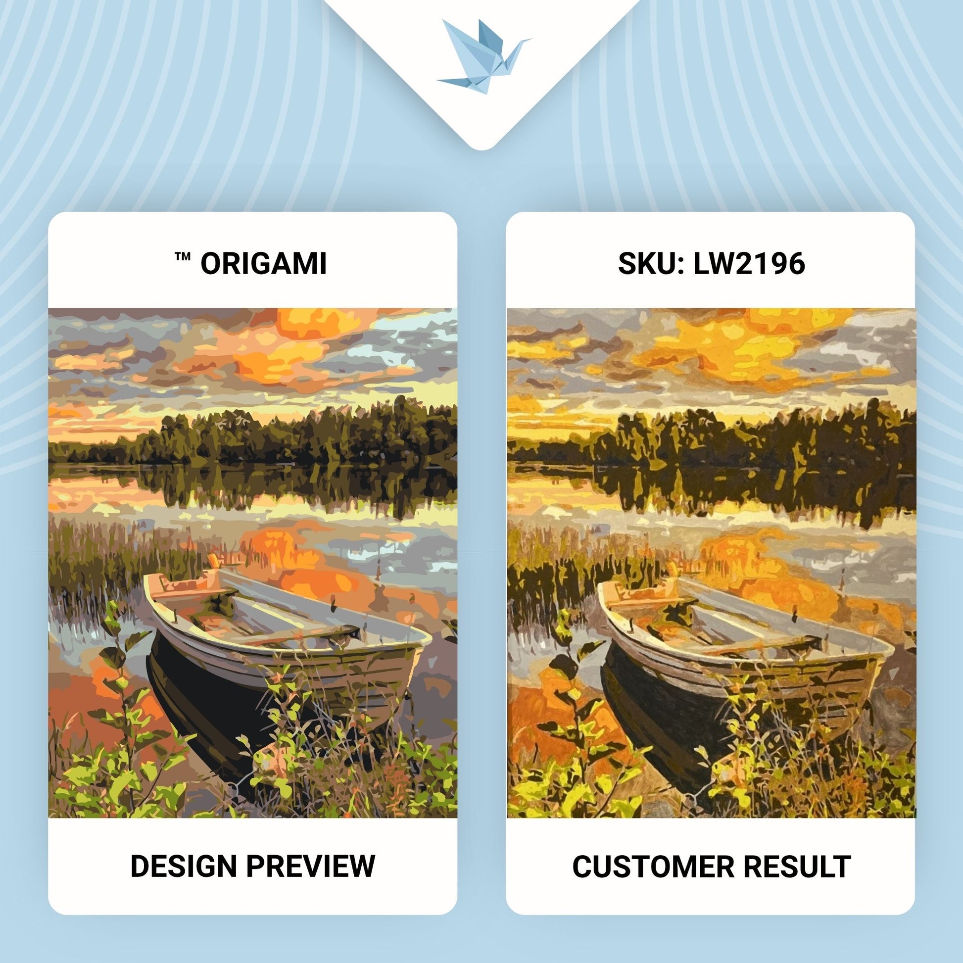 Maľovanie podľa čísel krajinka – Čln pri západe slnka 40*50 cm LW 2196