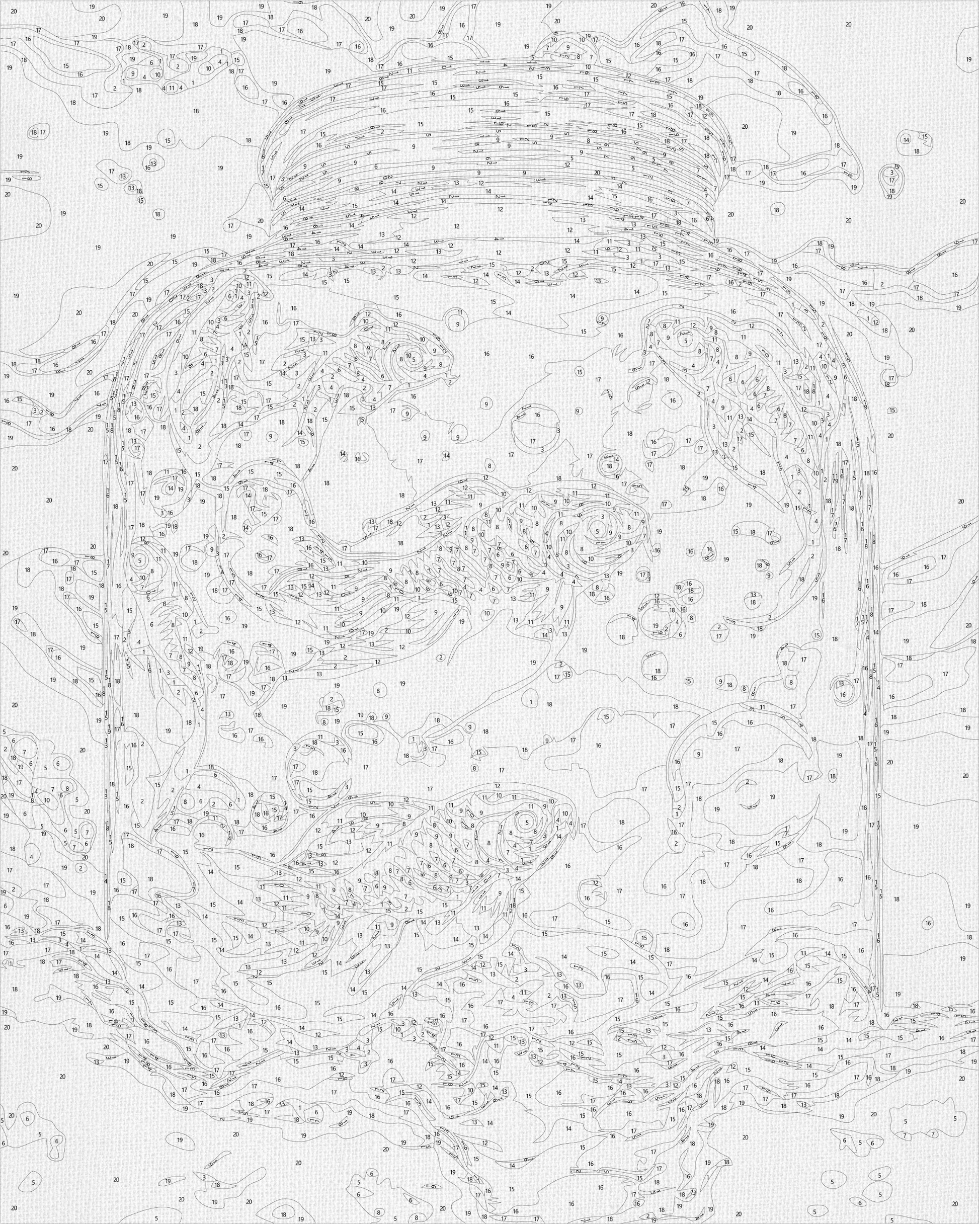 - Plátno s očíslovaným obrysom motívu natiahnuté na drevený rám (bez rámu je maľovanie veľmi nepohodlné, preto v našej ponuke nájdete iba plnohodnotné obrazy)