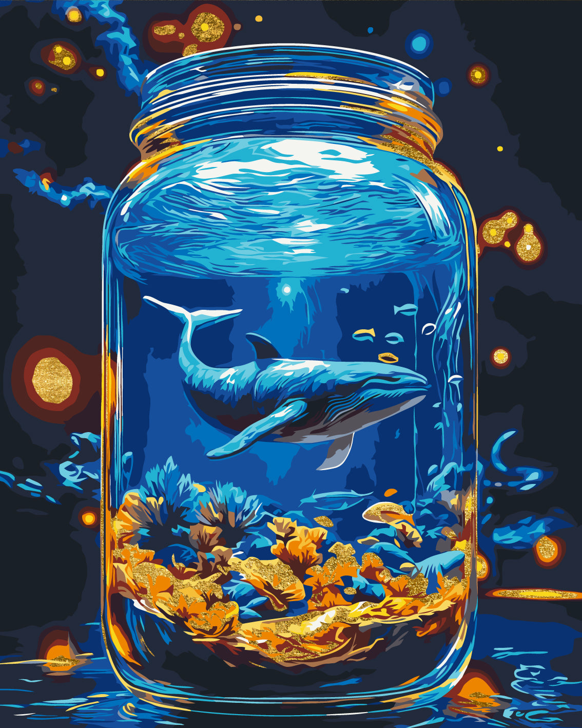Maľovanie podľa čísel - Podmorský svet, veľryba s metalickými farbami 40*50 cm LW 3461