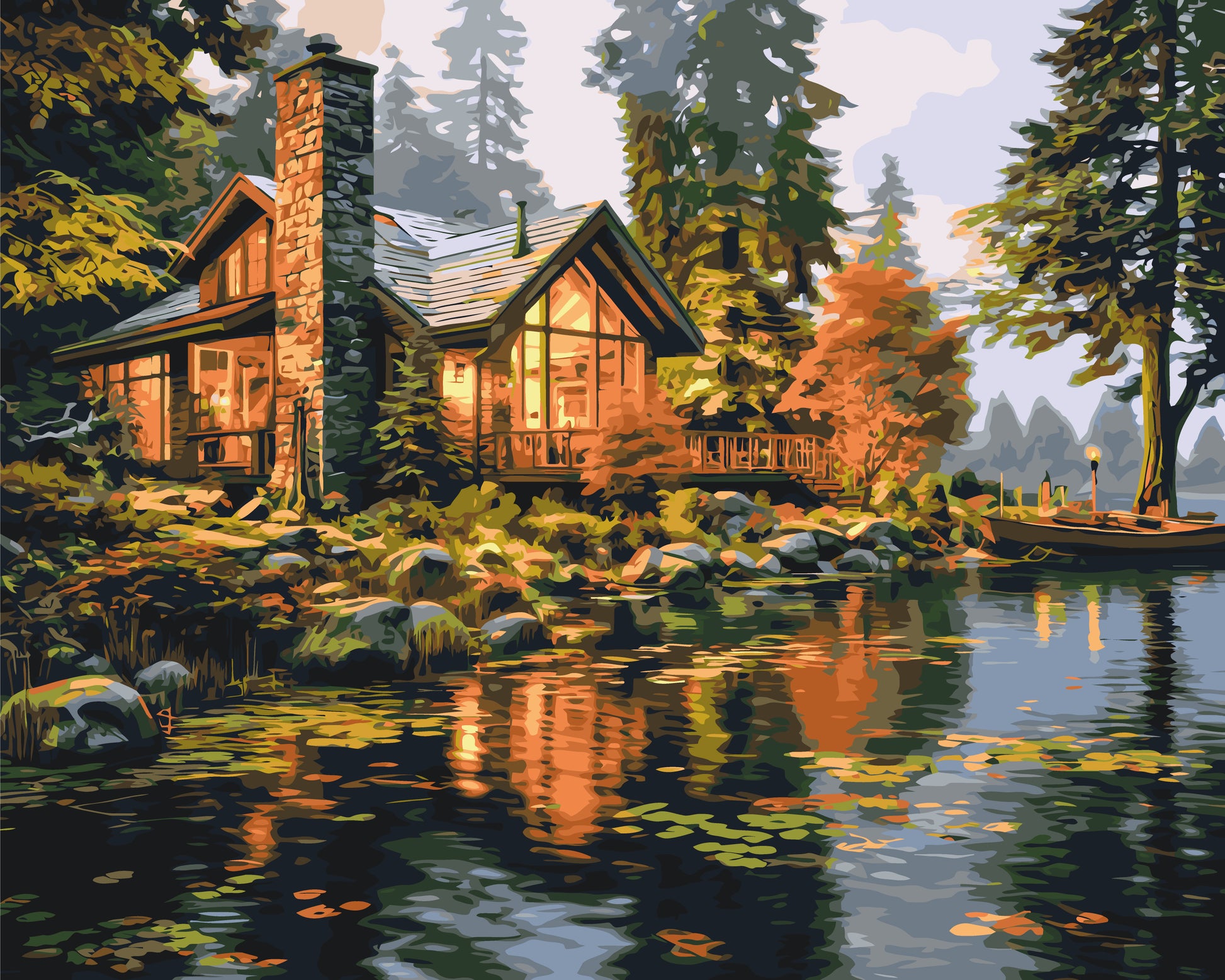 Maľovanie podľa čísel – Krajinka. Dom pri rieke 40*50 cm LW 31710