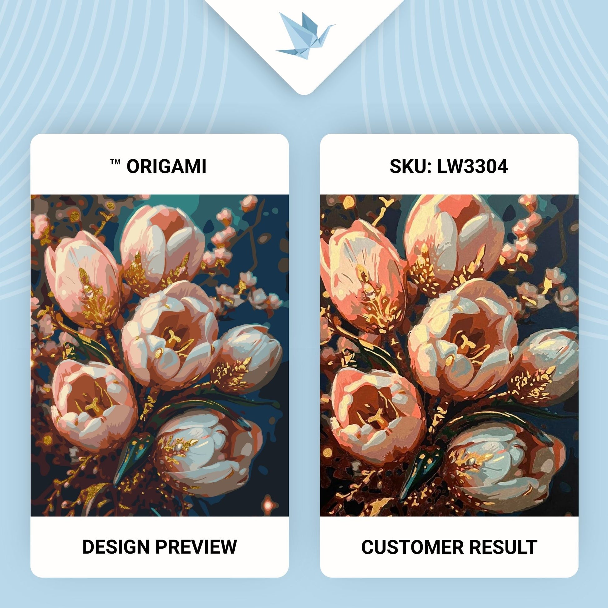 Maľovanie podľa čísel Kvety. Jemné tulipány s metalickými farbami (zlato) 40*50 cm LW 3304