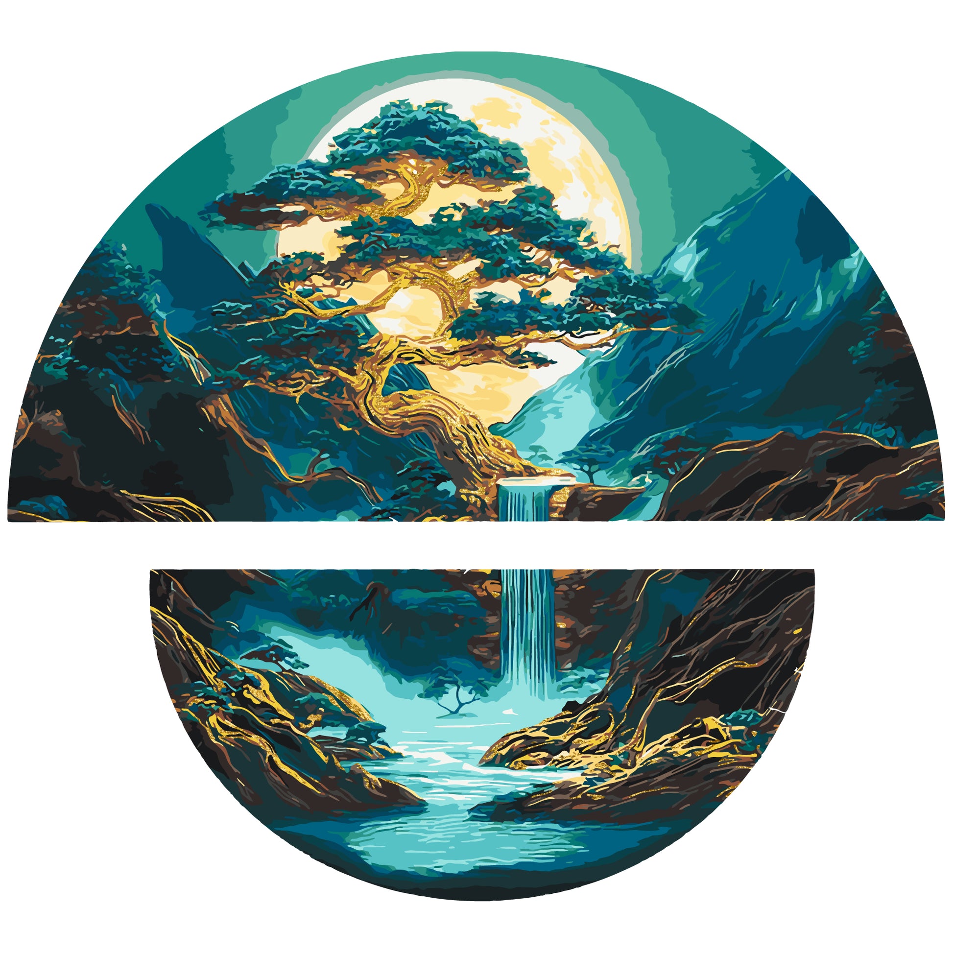 Maľovanie podľa čísel Mágia nočnej krajiny s metalickými farbami (polkruhy) 70×70 cm OSR 1006