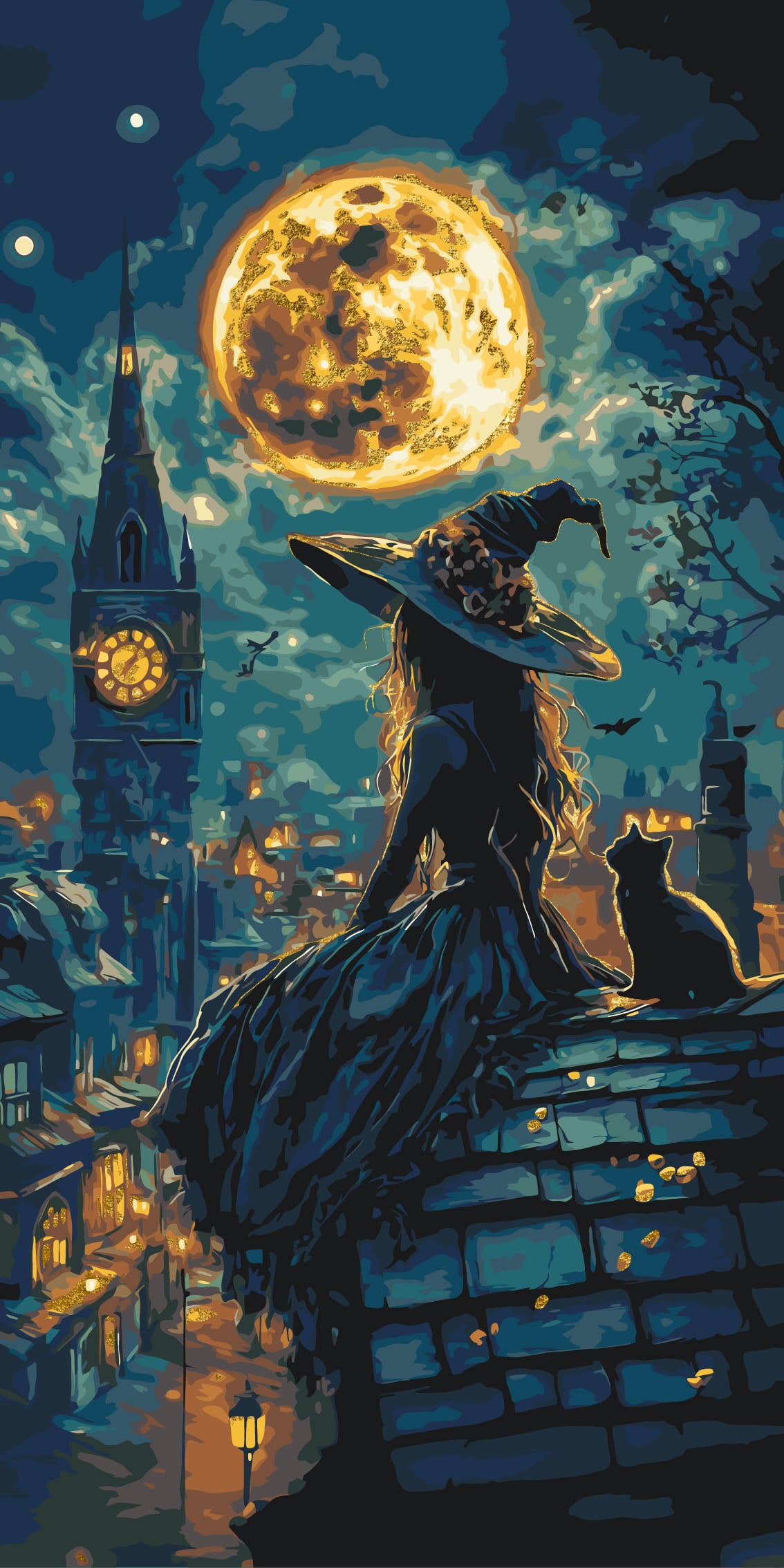 Maľovanie podľa čísel Mladá čarodejnica s metalickými farbami 40×80 cm LW 5130