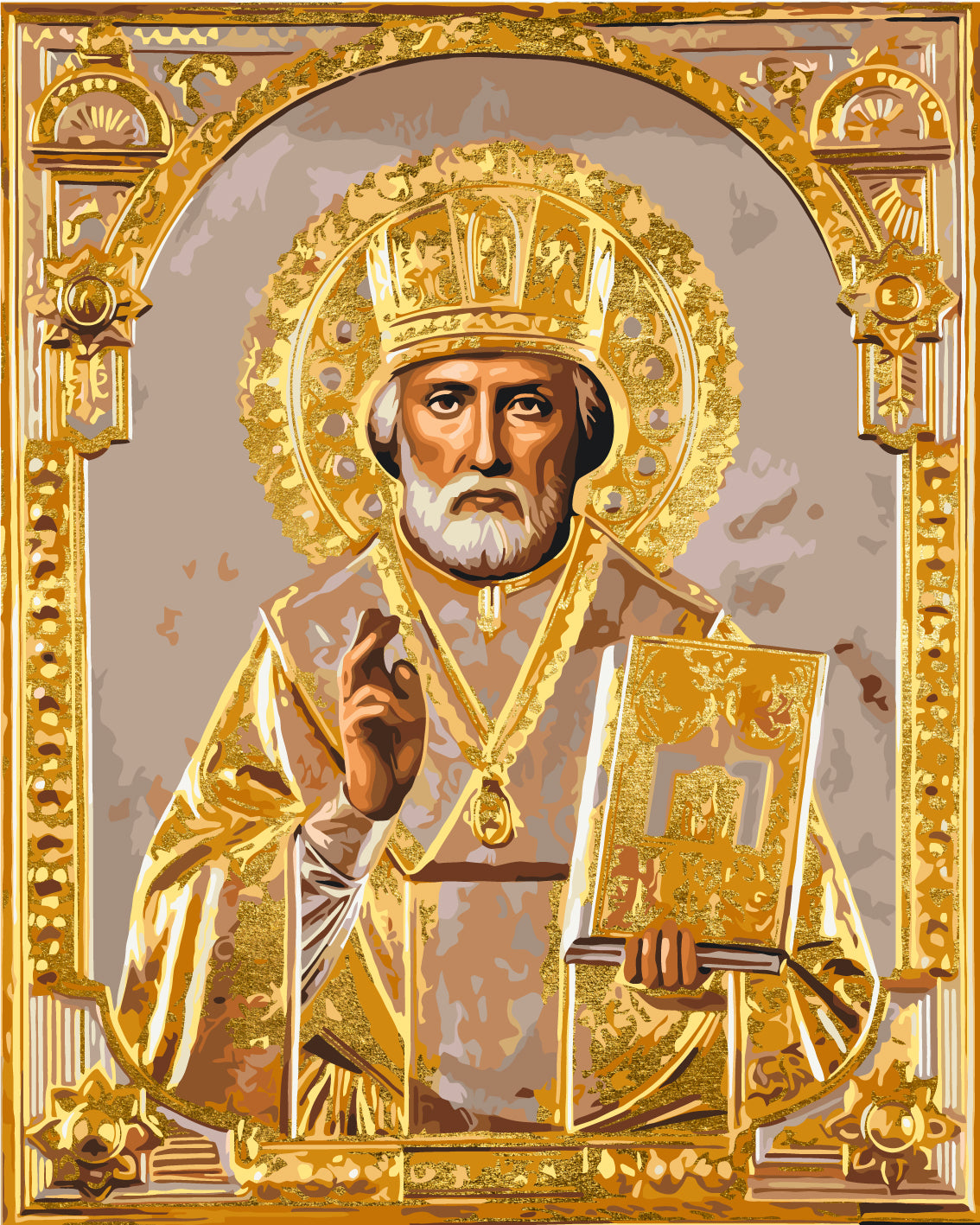 Maľovanie podľa čísel Náboženstvo. Svätý Mikuláš s metalickými farbami 40*50 cm LW 3432