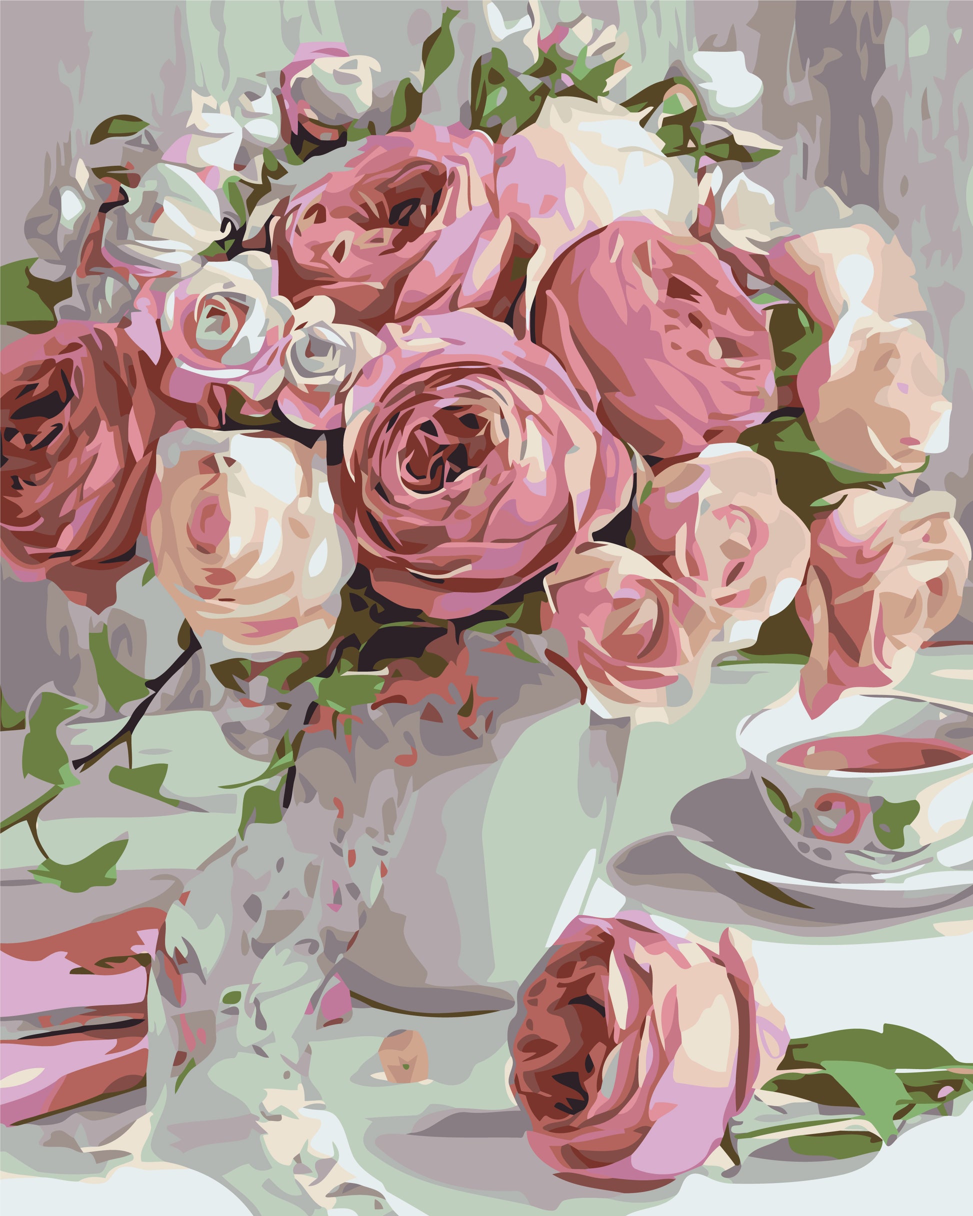 Maľovanie podľa čísel – Ružové pivónie. Kvety 40*50 cm LW 3069