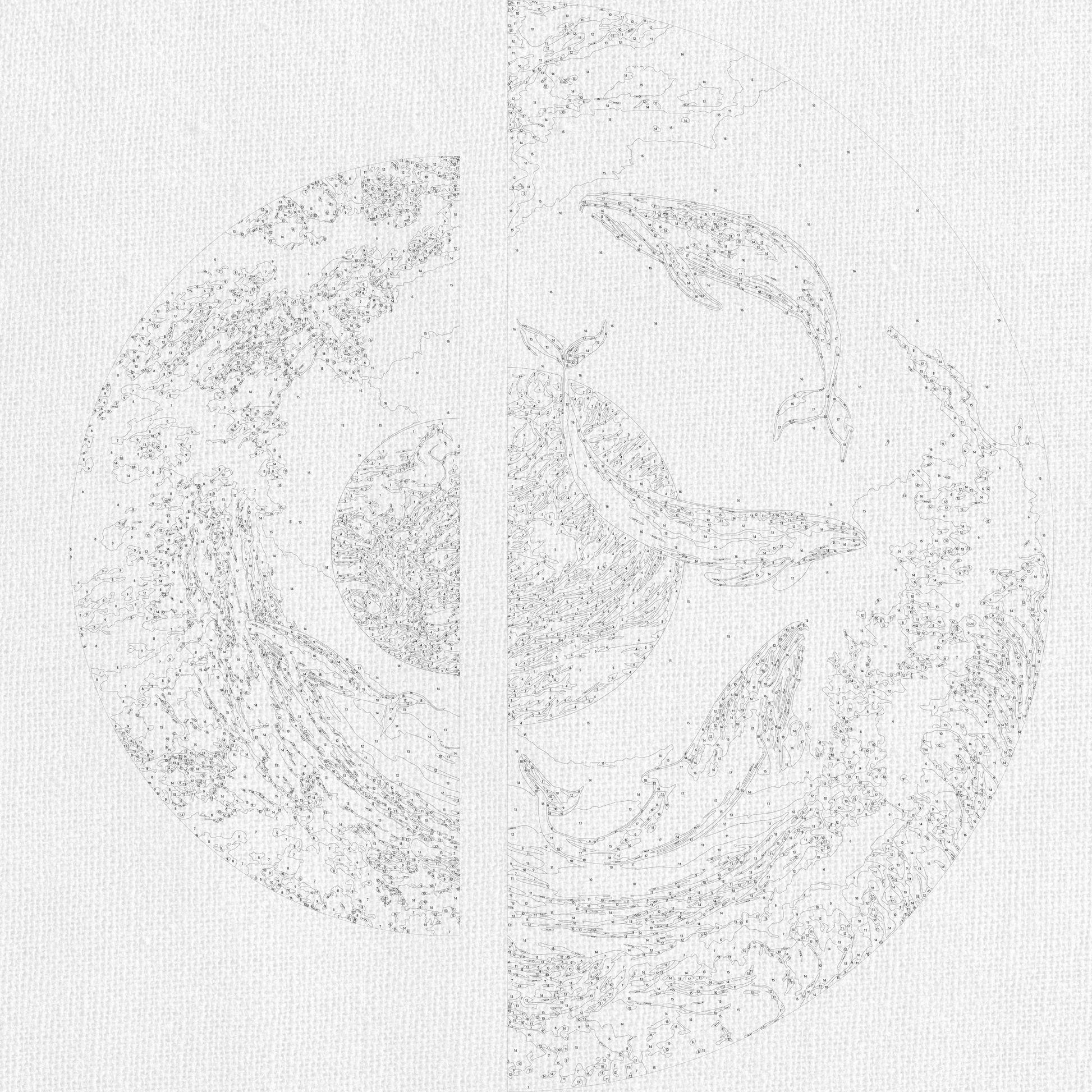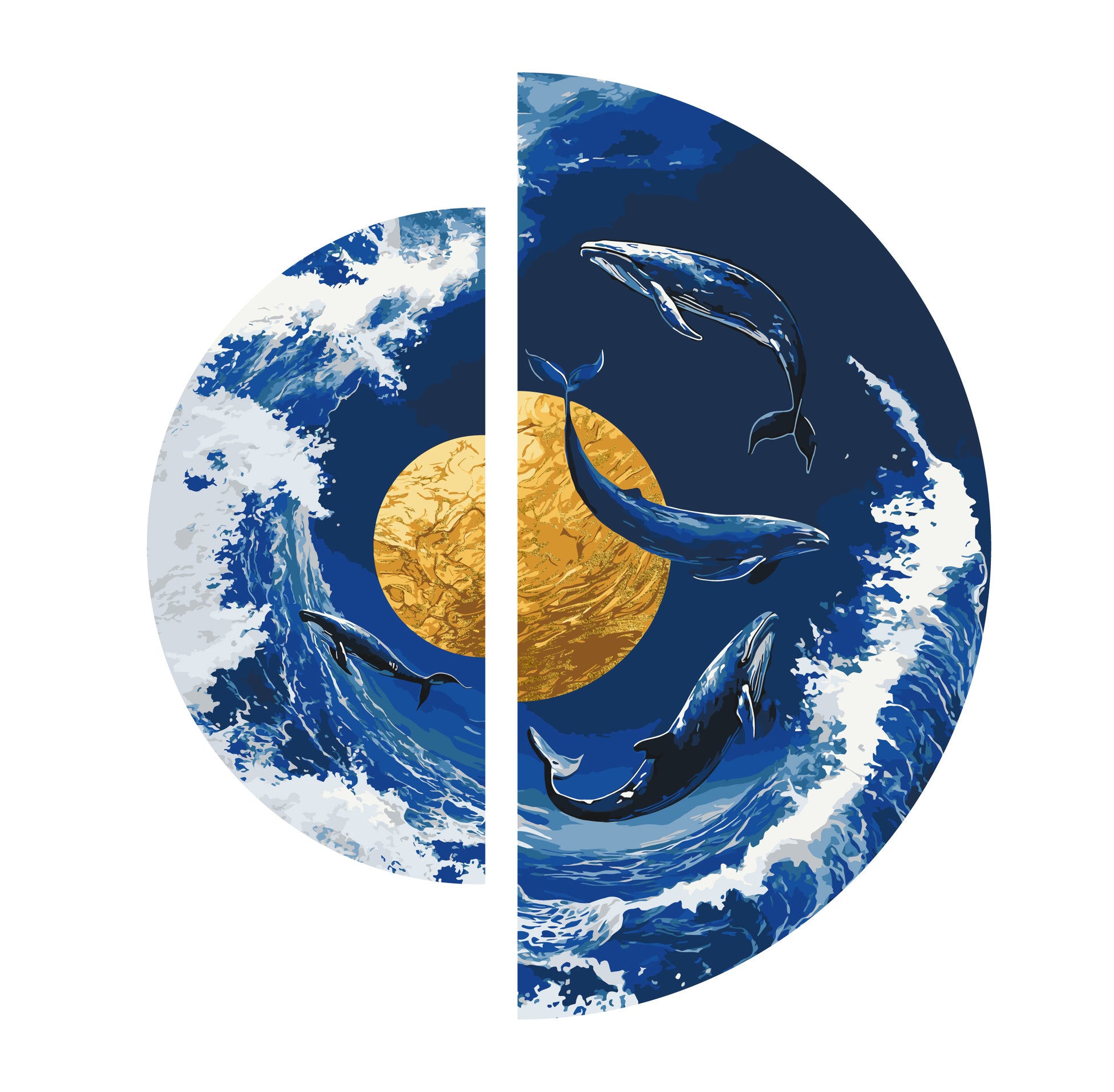 Maľovanie podľa čísel Tanec veľrýb pri zlatej planéte s metalickými farbami (polkruhy) 70×70 cm OSR 1002