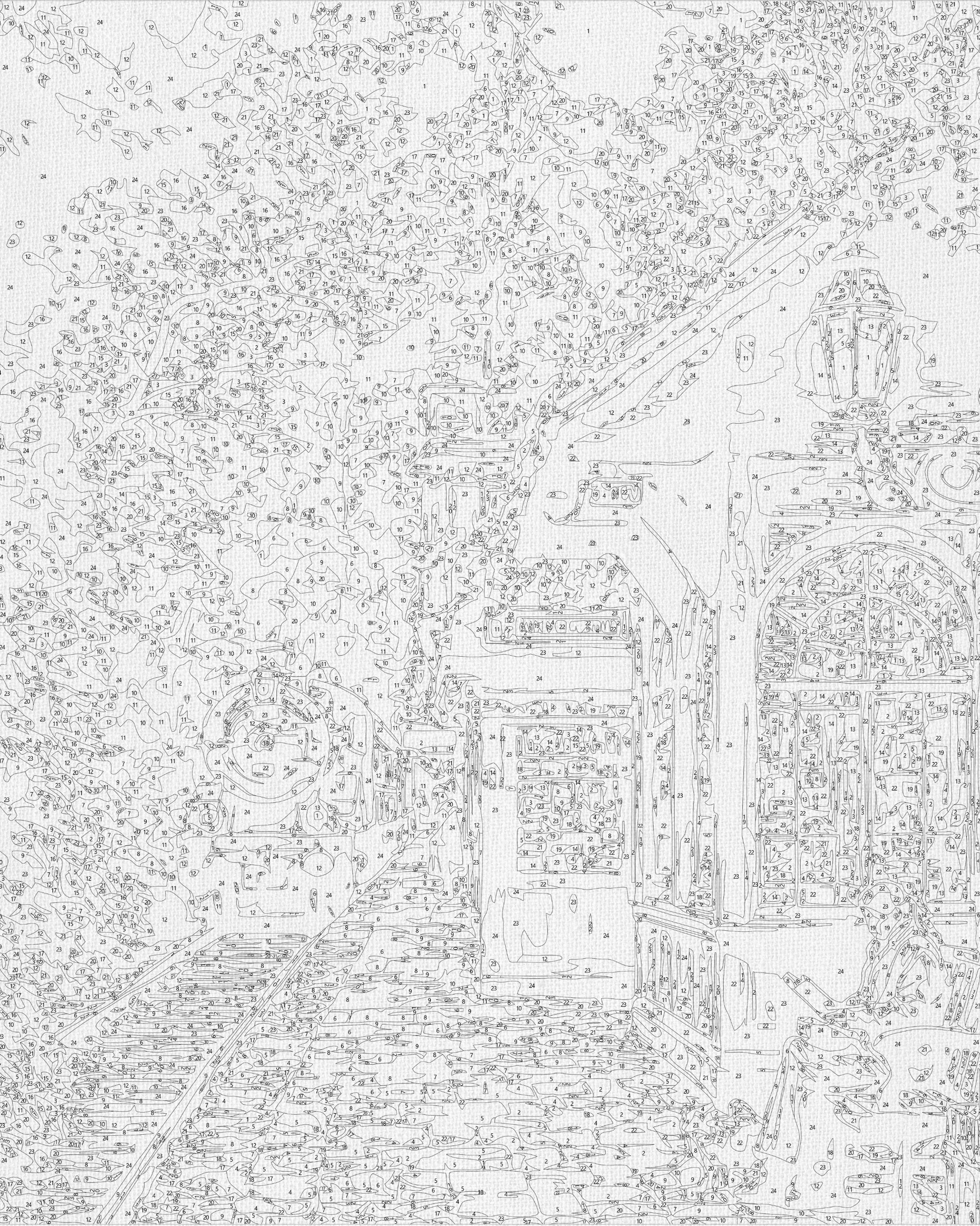 - Plátno s očíslovaným obrysom motívu natiahnuté na drevený rám (bez rámu je maľovanie veľmi nepohodlné, preto v našej ponuke nájdete iba plnohodnotné obrazy)