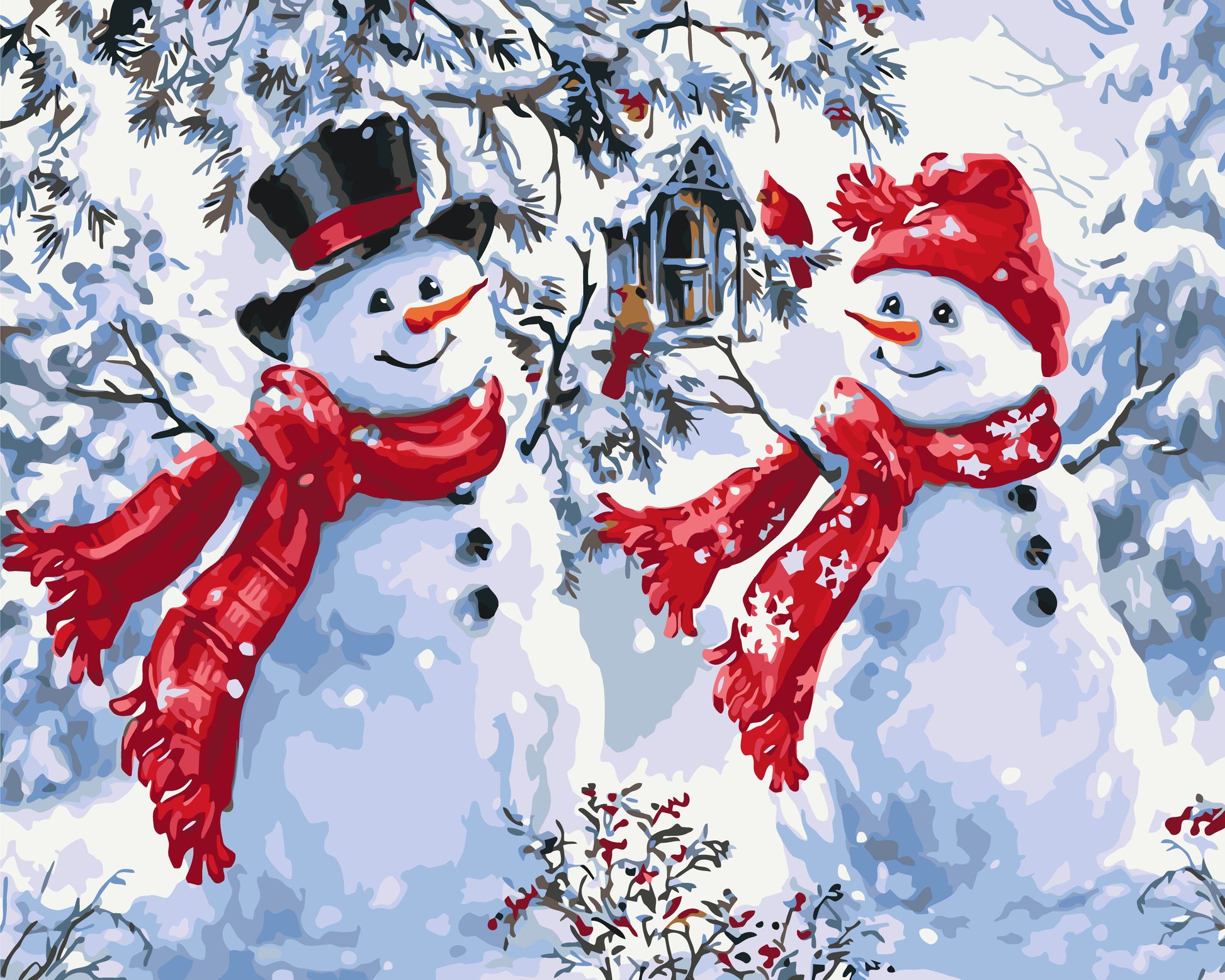 Maľovanie podľa čísel zimné – Veselí snehuliaci 40*50 cm LW 3070