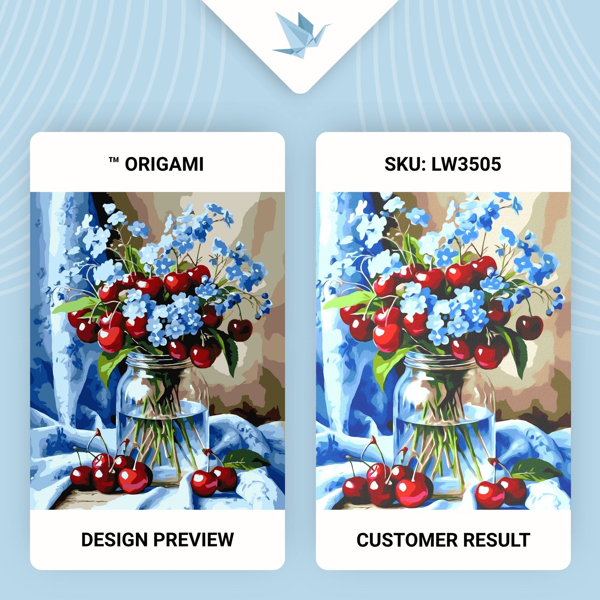 Maľovanie podľa čísel – Zátišie. Kytica kvetov s višňami 40*50 cm LW 3505