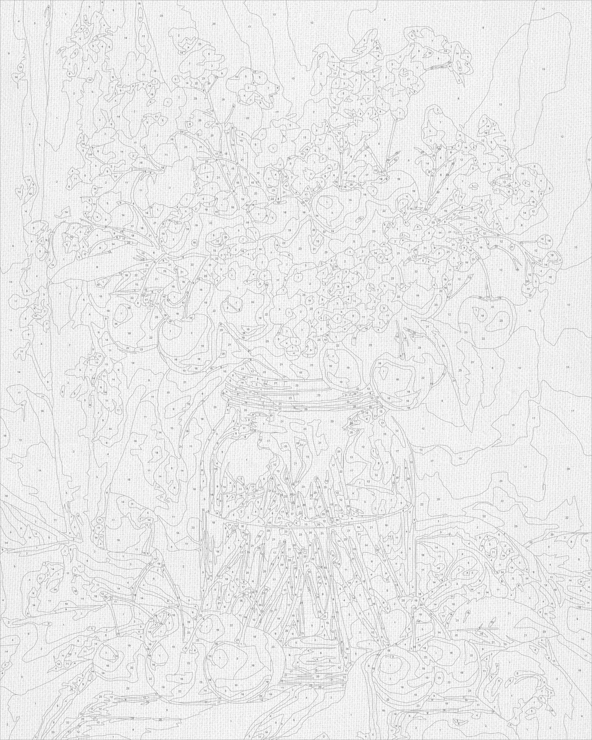 - Plátno s očíslovaným obrysom motívu natiahnuté na drevený rám (bez rámu je maľovanie veľmi nepohodlné, preto v našej ponuke nájdete iba plnohodnotné obrazy)