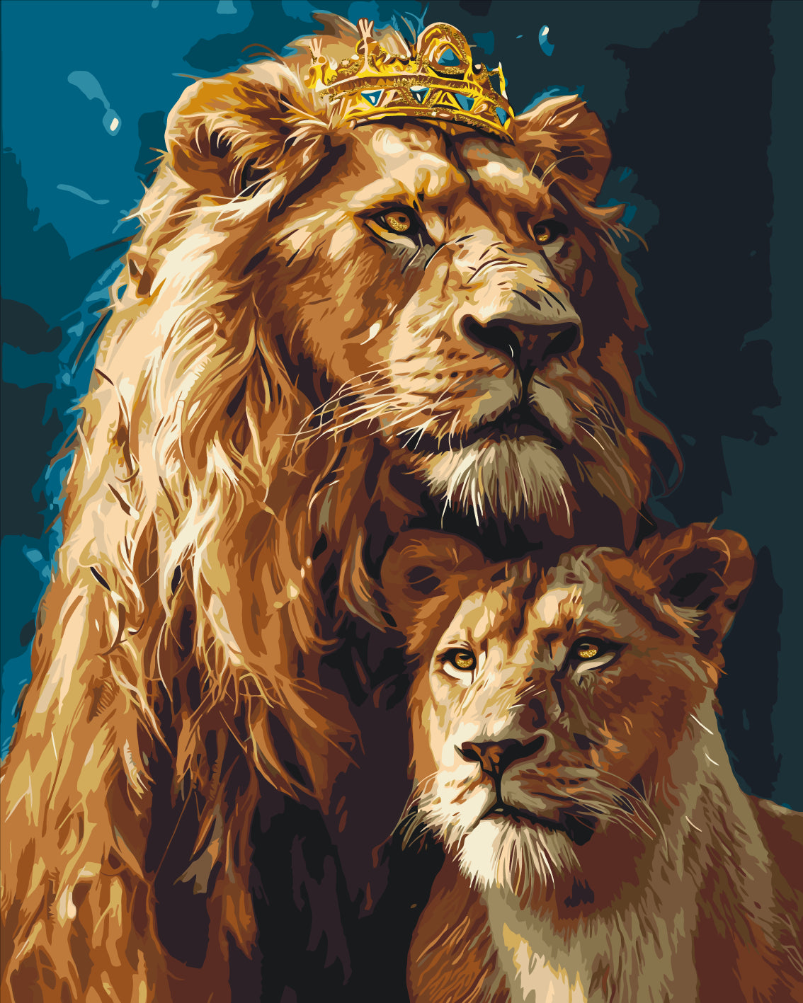 Maľovanie podľa čísel Zvieratá. Lev a levica. S metalickými farbami 40*50 cm LW 0320