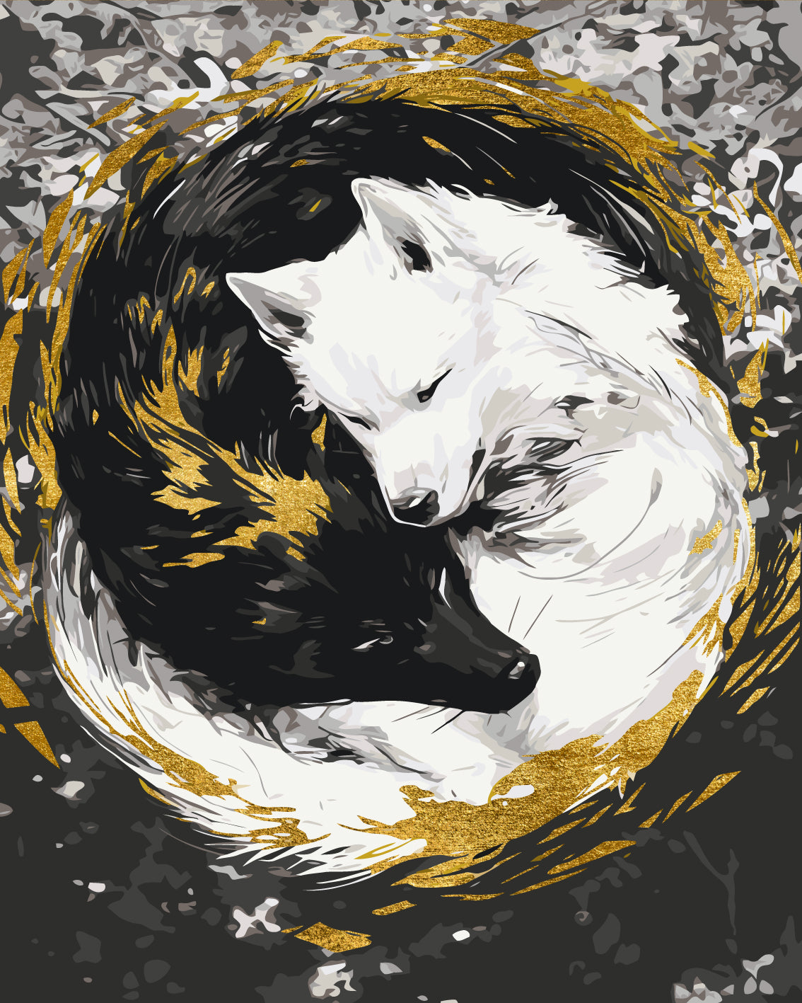 Maľovanie podľa čísel Zvieratá. Pár vlkov s metalickými farbami (jin jang) 40*50 cm LW 3458