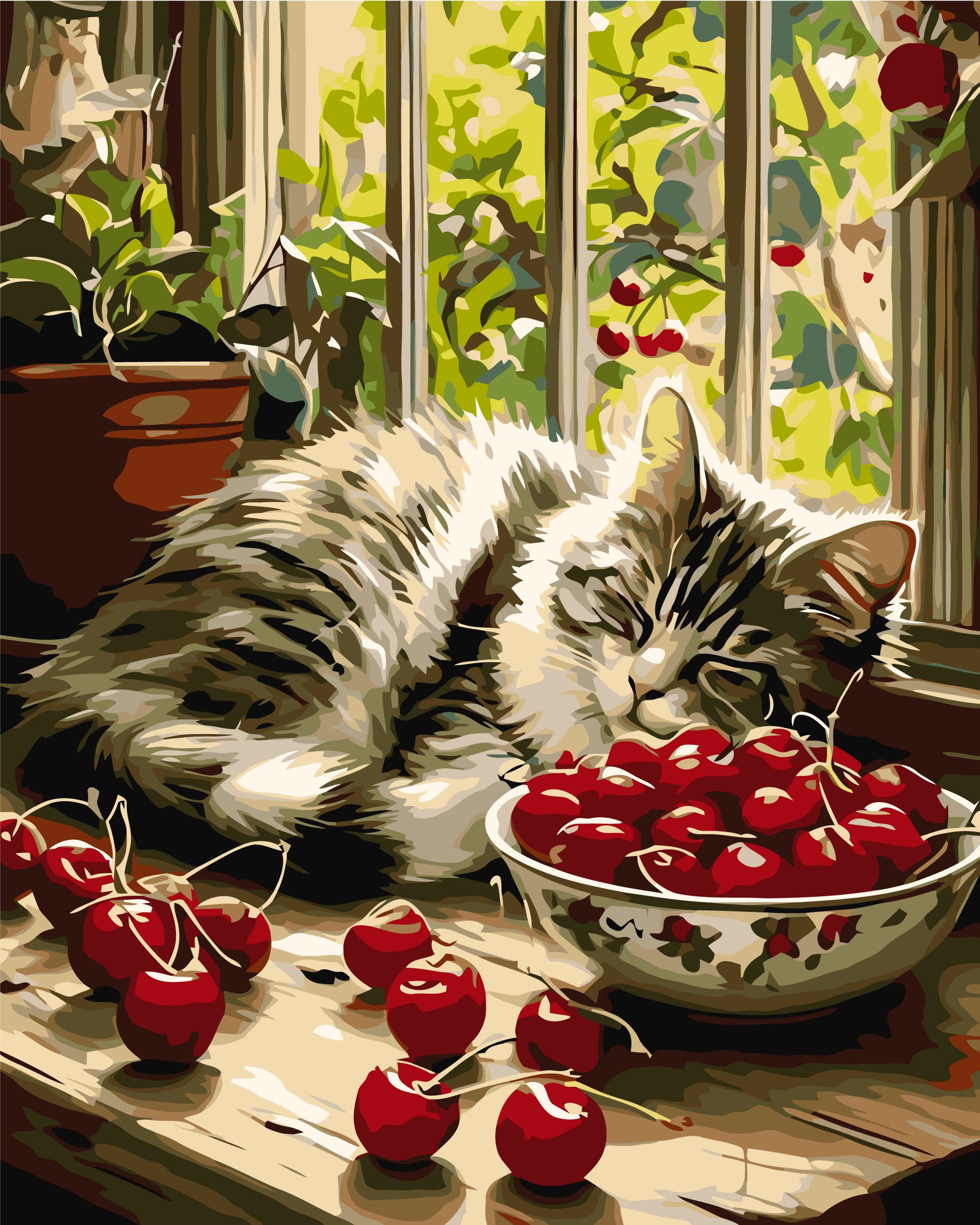 Maľovanie podľa čísel – Zvieratá. Spiace mačiatko na okne 40*50 cm LW 3510