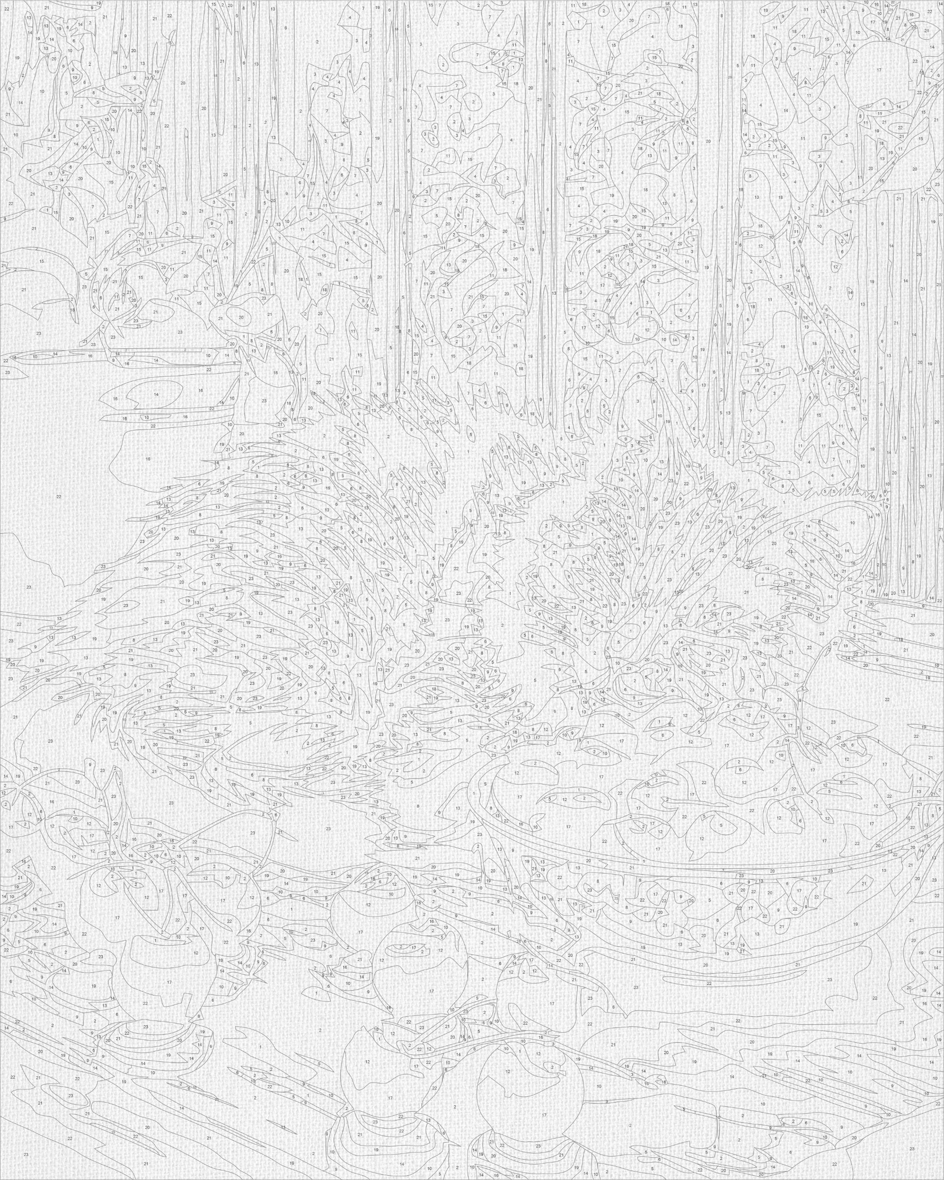 - Plátno s očíslovaným obrysom motívu natiahnuté na drevený rám (bez rámu je maľovanie veľmi nepohodlné, preto v našej ponuke nájdete iba plnohodnotné obrazy)